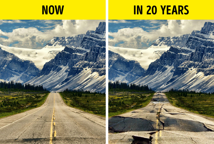▼7.道路毀壞:原本寒冷的地區會變暖和,但對那裡的人來說,這不是什麼好消息。冬天氣溫升高的話,存在多年的冰會融化。很多建築、道路也無法承受氣溫的變化。