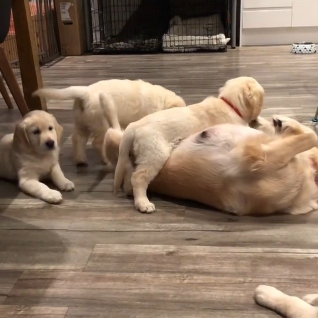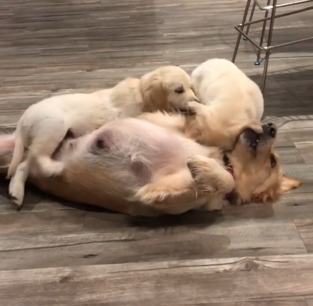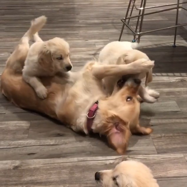 2018年10月26日母親的偉大在於她們對小孩們無私的付出,全年無休的為小孩提供愛護和照顧,忙得連休息時間也沒有,這個工作可說是所有職業中最辛苦的一個!當小孩特別好動時,不僅是人類,就連狗媽媽也會被盧得無可奈何,就好像以下這隻金金媽一樣…