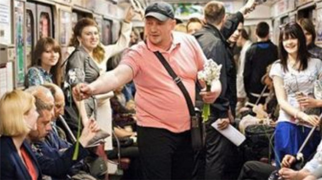 ▼12. 他為地鐵上所有的女性送上一朵花。