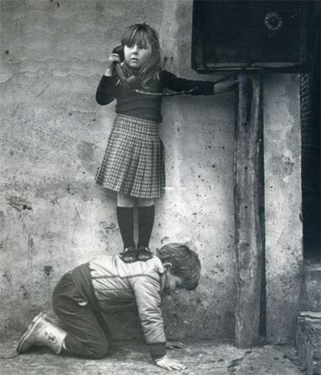 ▼15. 小男孩幫助小女孩打電話。