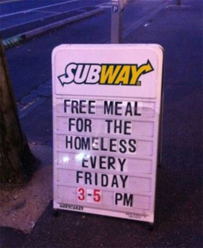 ▼11. 這間快餐店在每週五下午的3點到5點為流浪漢提供免費的食物。