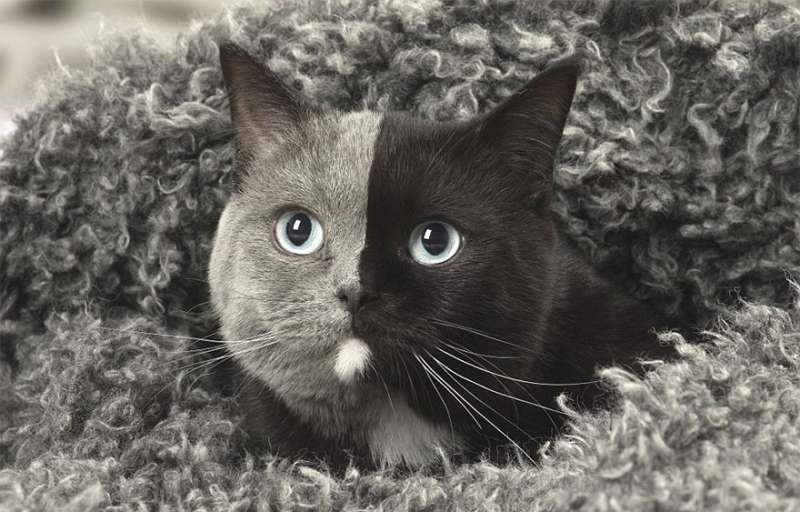 ▼嵌合體不僅僅出現在貓咪當中,人類和其他動物也可能出現同樣的情況。Narnia擁有兩套免疫系統和DNA,從外表到內部都很不尋常。