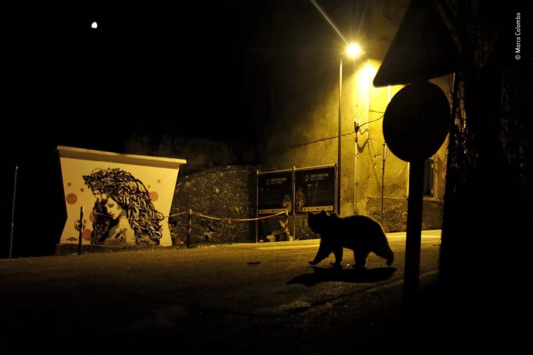▼「過馬路」(Crossing Paths) - 2018年度,城市野生動物類組別(Urban Wildlife)之得獎作品,由義大利攝影師「Marco Colombo」所拍攝。