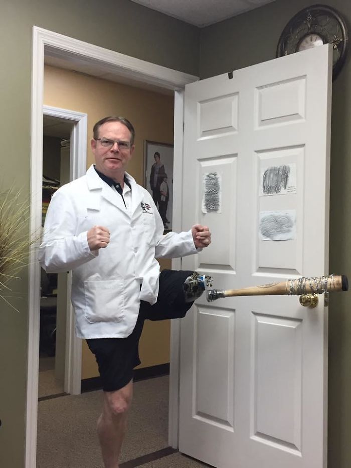 ▼爸爸換了髖關節,醫生把骨頭留了下來,這樣他就能做拐杖啦。