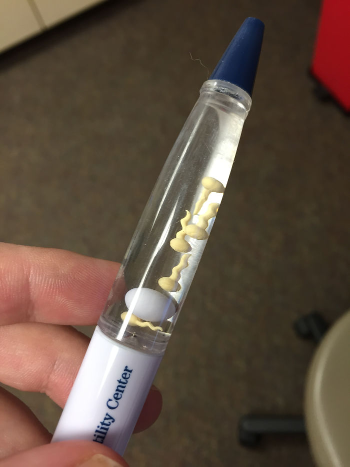 ▼妻子懷孕去做產檢,看到了醫生的筆。