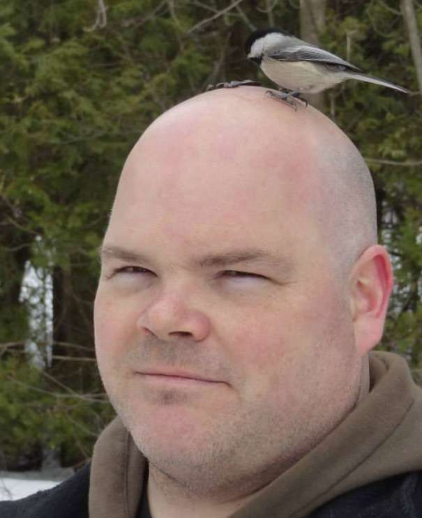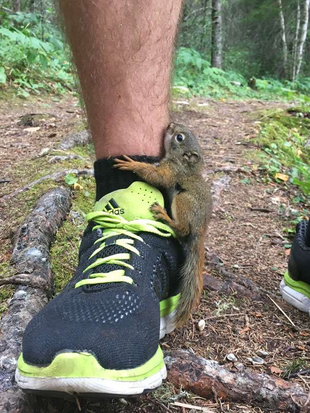 ▼颶風後,這隻小松鼠跳到他頭上,然後暈倒了,牠一定度過了艱難的一夜。