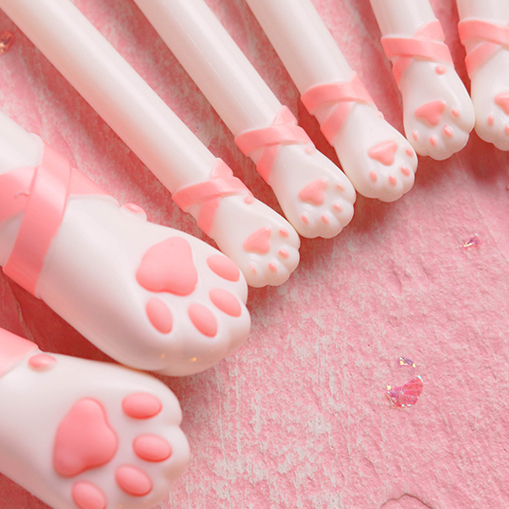 ▼該品牌新推出的化妝刷具系列,含蜜粉刷、修容刷、腮紅刷、大小暈染刷、眼影刷、眉粉刷、眼影細節刷、斜頭鼻影刷等,可說是所有願望一次滿足,但這都不是重點!重點是刷具的尾端!通通是貓咪肉球的造型!且最具巧思的是,肉球部分的材質採用仿貓掌觸感的可按壓軟墊,整個就療癒指數破表阿!