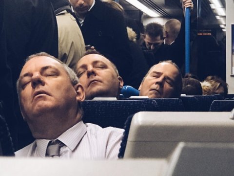 ▼這3個人長得很像,他們搭同一班公車,連睡姿都像複製的。