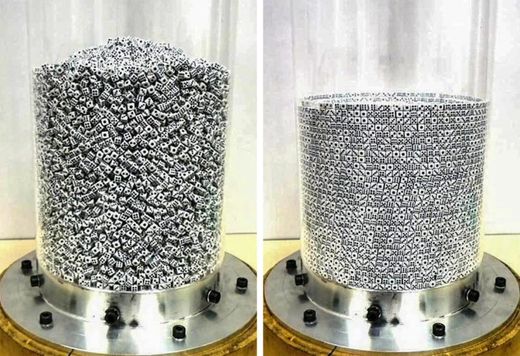 ▼2.5萬顆骰子經過攪拌之後的模樣。
