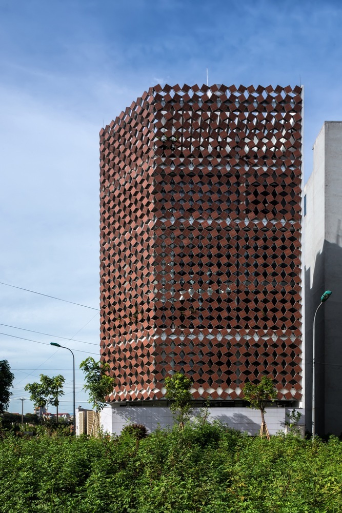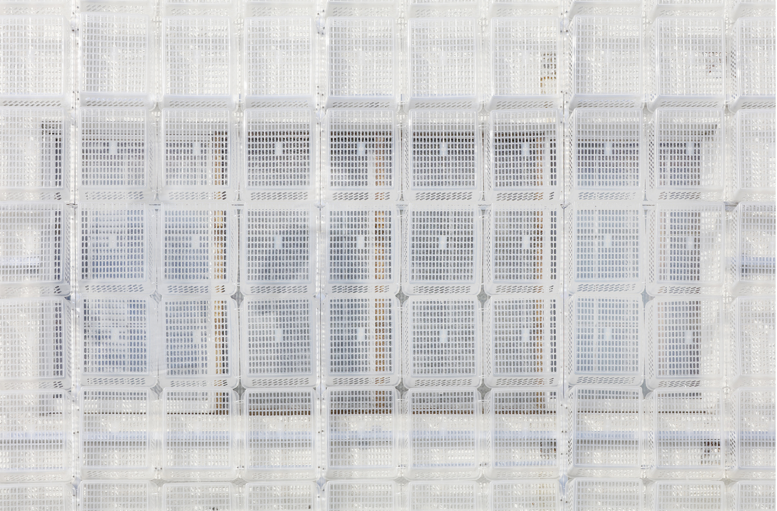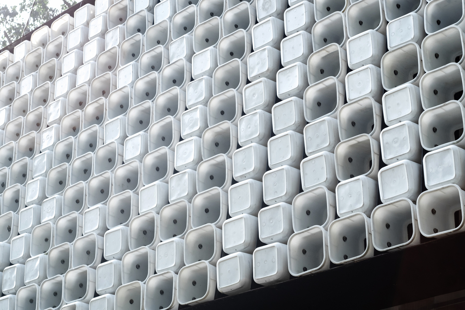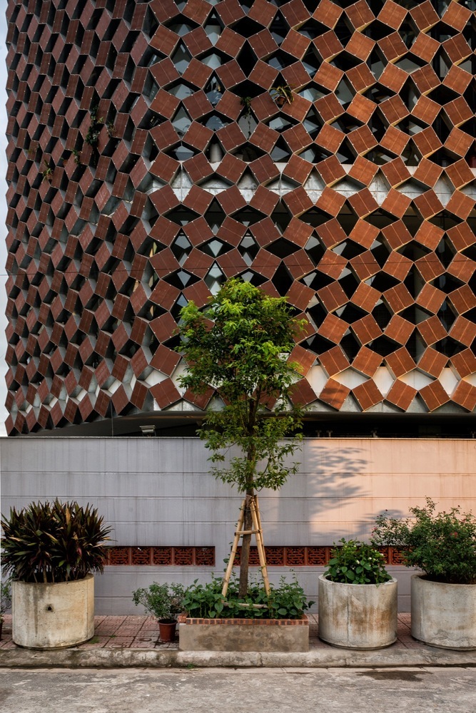 建築的外層採用了回收陶瓷磚,瓷磚層次可以通過打開的嵌板,淨化塵土與煙霧,帶走熱量。