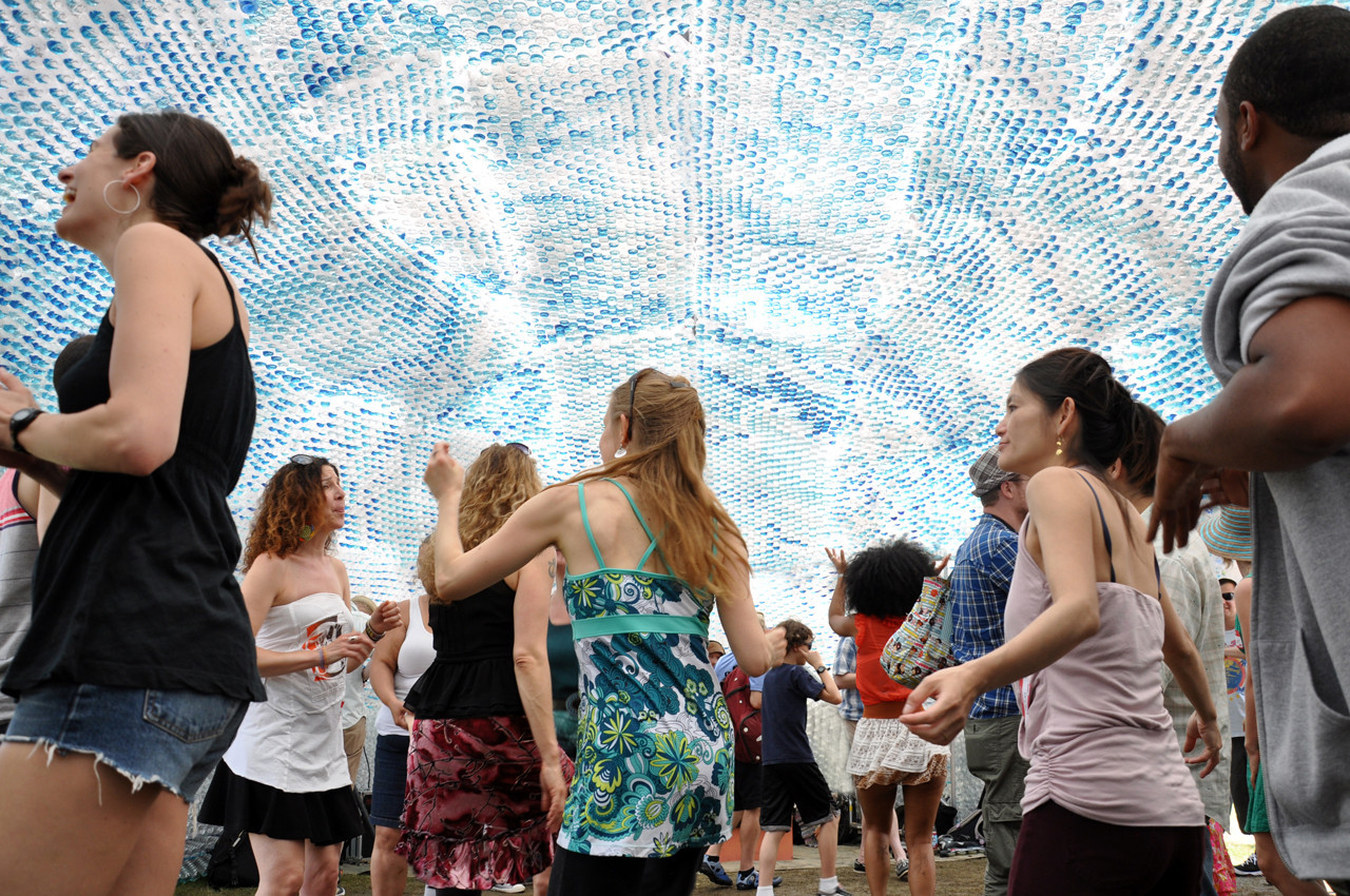是用53780個回收瓶建造的,形成雲狀的展館,這座展館贏得了美國建築師協會的小型項目獎。