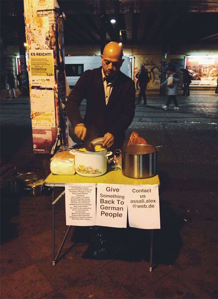 ▼敘利亞難民在德國為街友分發食物。