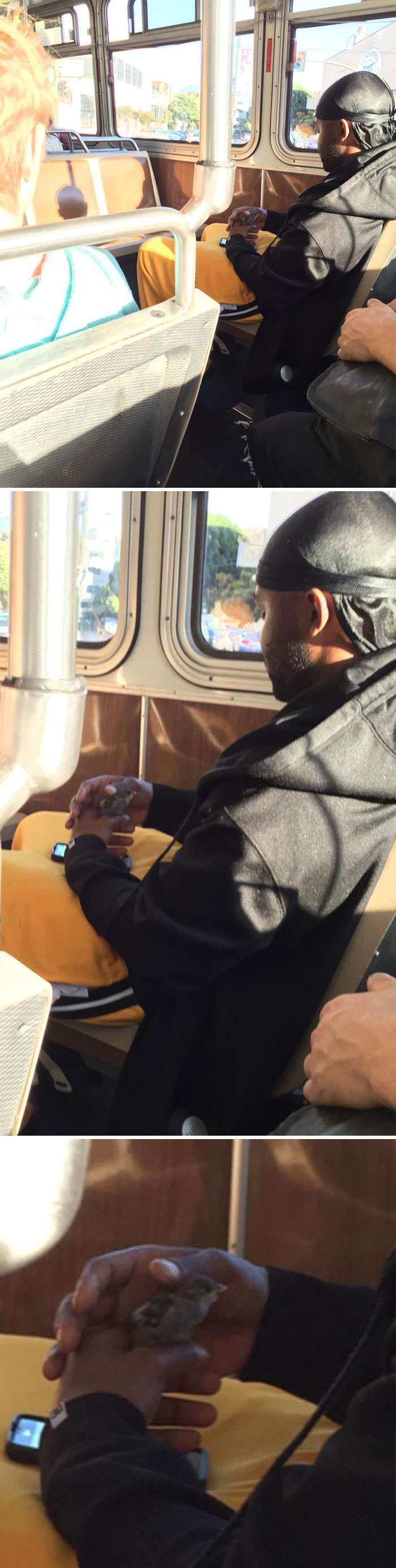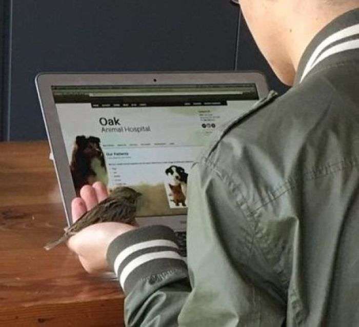 ▼這名男子正在幫受傷的麻雀找獸醫。
