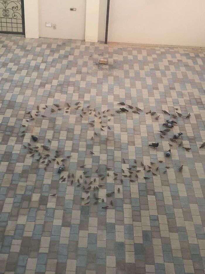 ▼每天早上爸爸都在院子裡撒鳥食,還撒成心形,媽媽醒來後一眼就能看到。