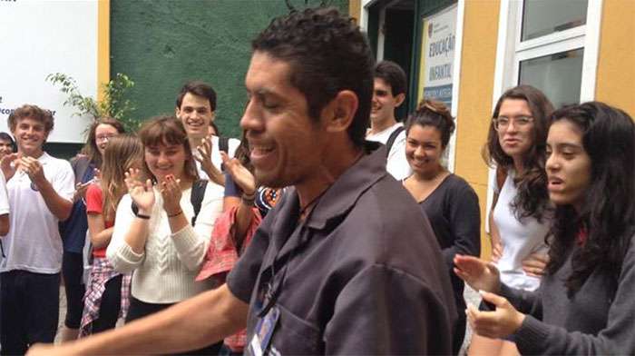 ▼這間學校的警衛是「Red Hot Chili Peppers」的粉絲,但他沒錢買票,不能去現場看比賽,學生們湊錢給他買票。