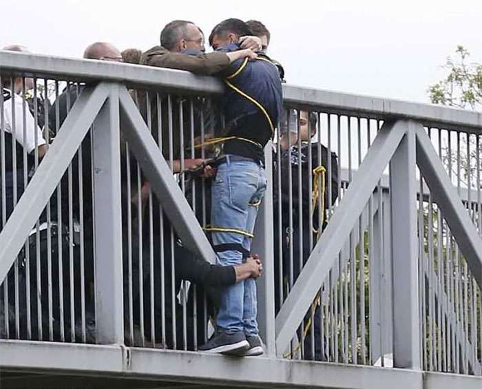 ▼人們努力勸說想要自殺的男子,請勇敢活下去!