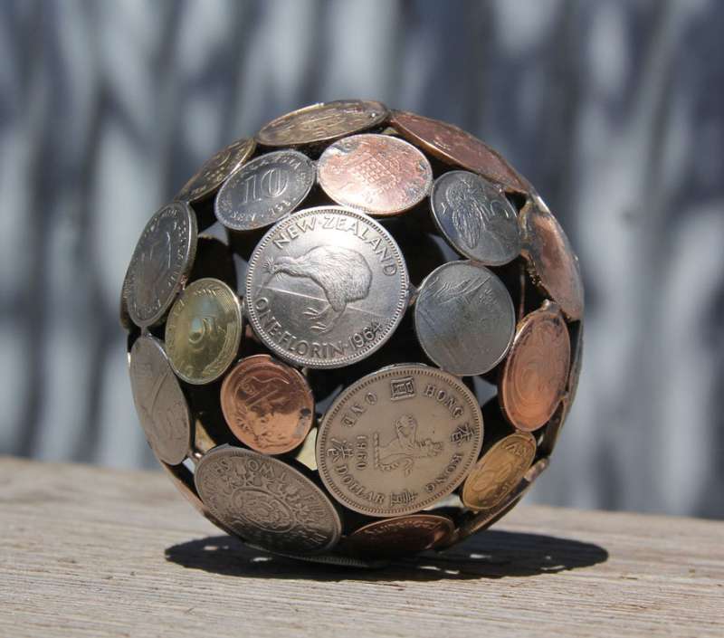 ▼他用硬幣做了一個小球。它是那麼的圓,真是讓人驚嘆不已。