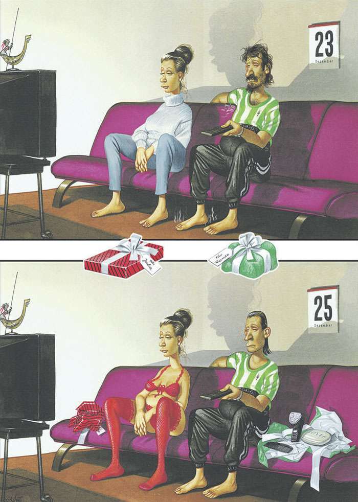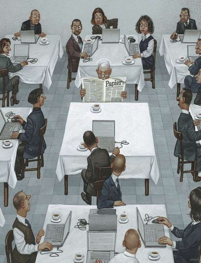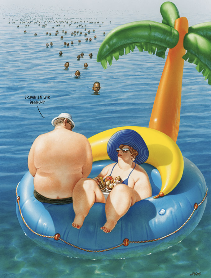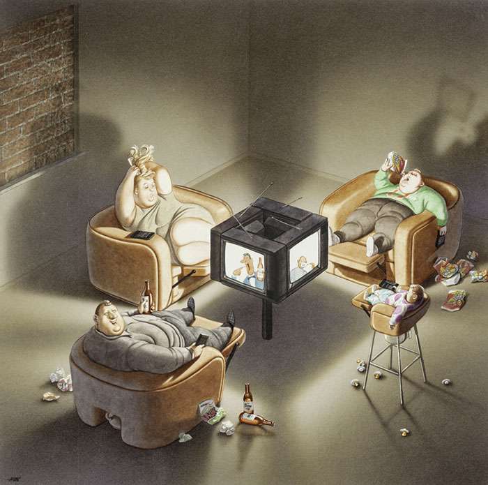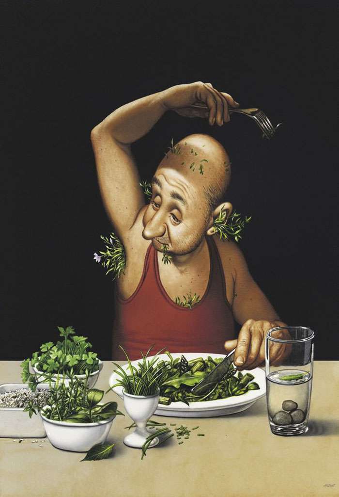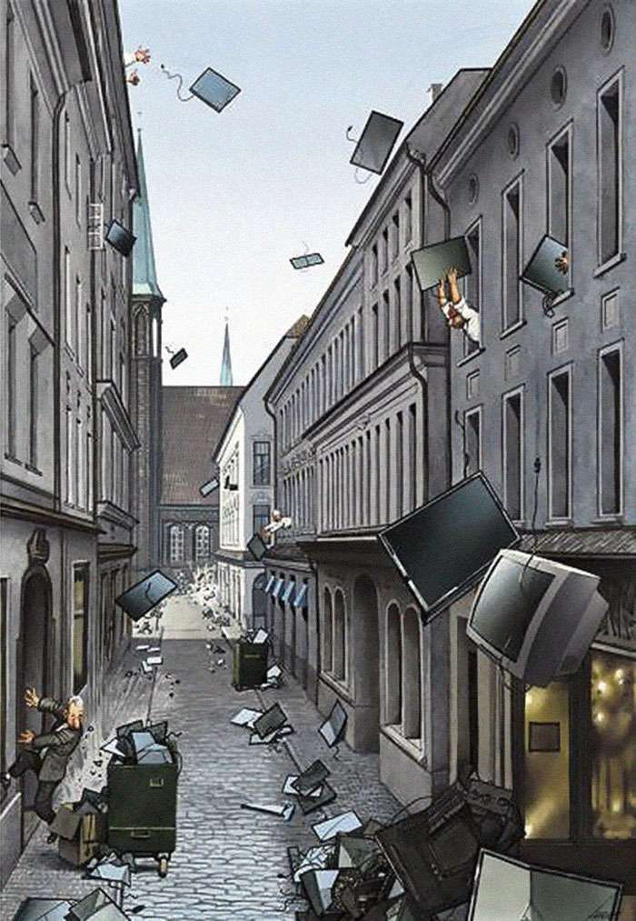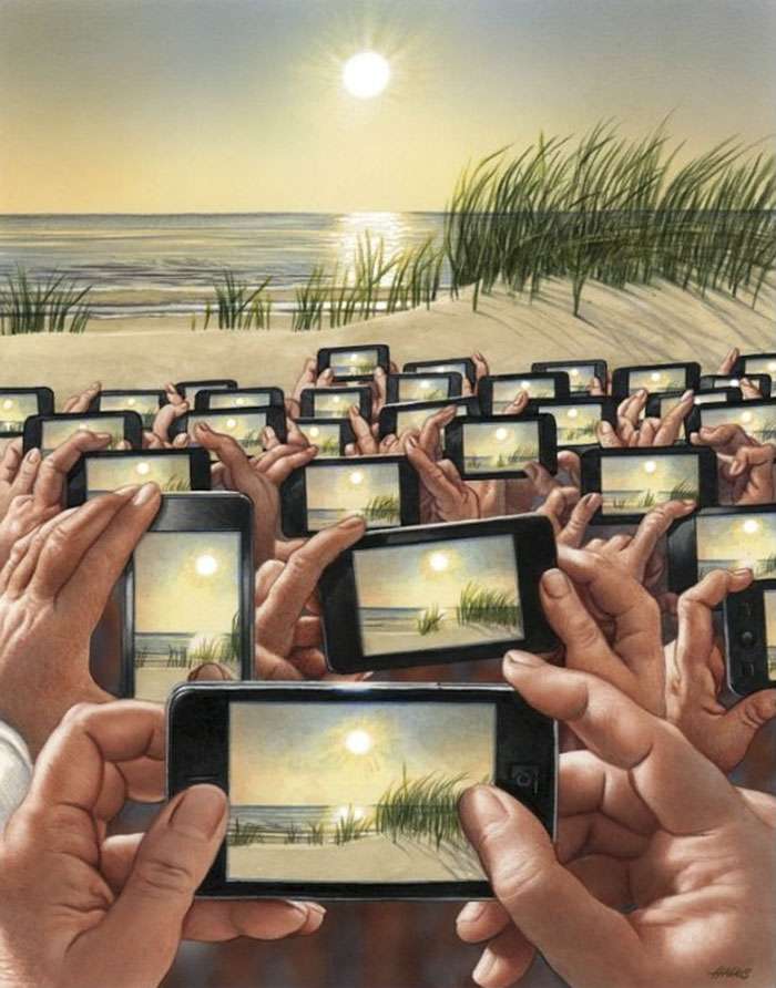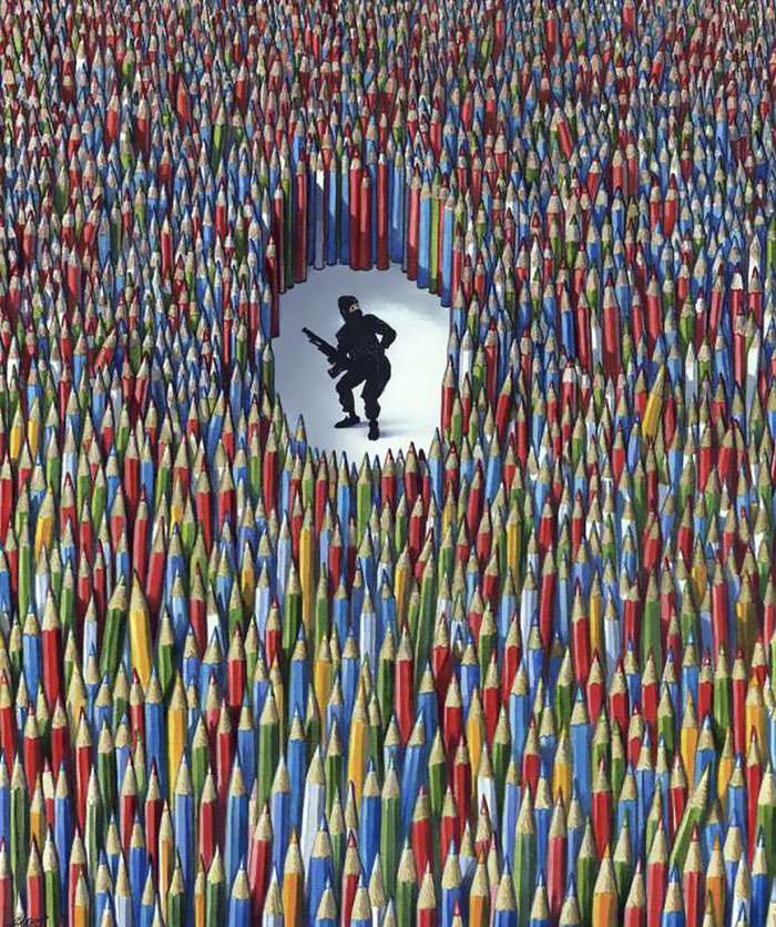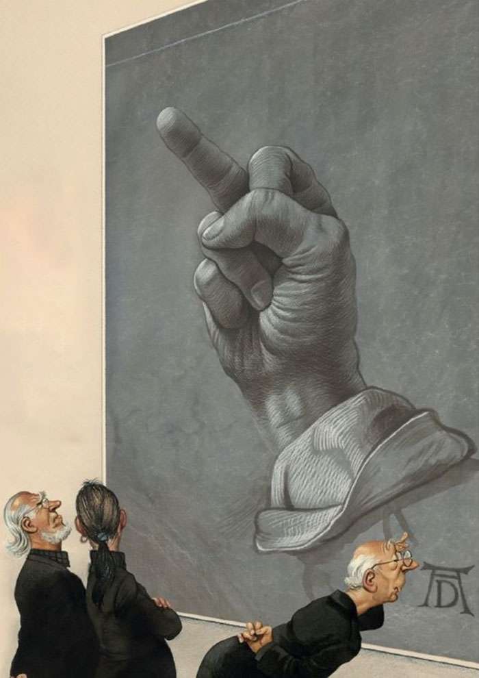 藝術不僅僅是為了讓眼睛看好看的事物而存在他,藝術同時也能帶給人們啟發和省思。來自奧地利的畫家格哈德(Grehard Haderer)原本是廣告公司的平面設計師和插畫家,後來他放棄了商業夢想,投身自由漫畫家和諷刺插畫家,他的寫實風格也深受許多網友的喜愛。來看看這些背後含有很深含義的作品吧:
