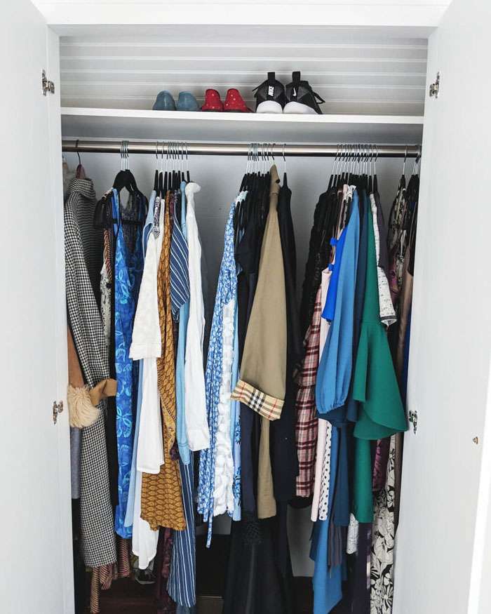▼衣櫃的門雖然比較小,可是其實左右都還有很多空間,可以放入更多的衣服。