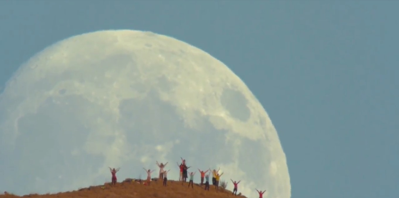 ▼可以看到月亮從他們的左下角慢慢升起,體積也越來越大了。