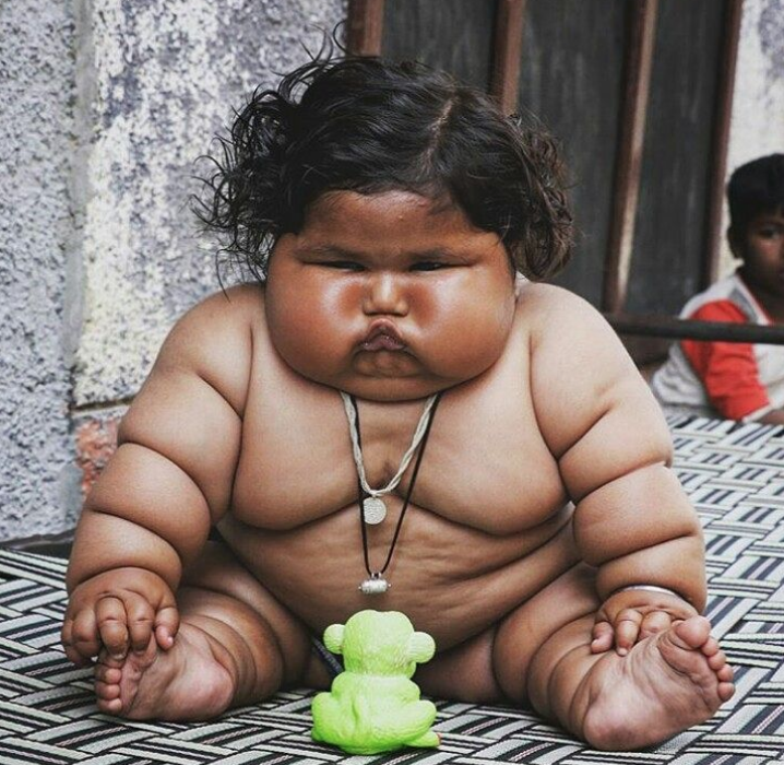 ▼10. Chahat Kumar是一名胖到令人擔憂的女孩子,她在8個月大的時候,體重就已經飆破17公斤。父母根本無法阻止女兒繼續吃東西,只能怪罪是上帝惹的禍。