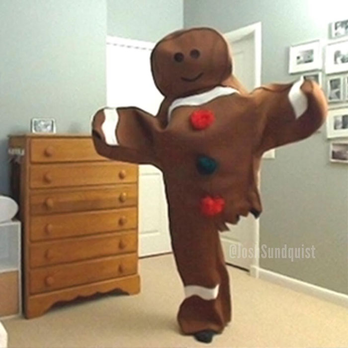 ▼在2010年的萬聖節,他打扮成了單腿的薑餅人,大獲好評後他也經常在網路上分享自己的萬聖節裝扮!