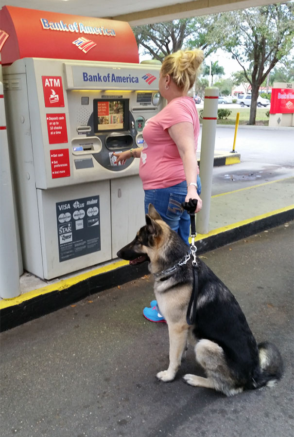 2018年11月13日漆黑的夜晚,一個人在僻靜的街道使用ATM機,怎麼看都很危險。下面這些人卻不害怕,因為他們帶著最忠心的護衛!他們使用ATM機時,毛小孩靜靜坐在旁邊,時刻保持警惕,如果真有壞人,對方肯定GG!