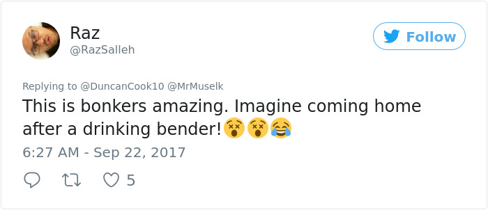 ▼網友們看到後紛紛表示:「這真是太棒了,想像一下喝醉後回家時會怎樣!」