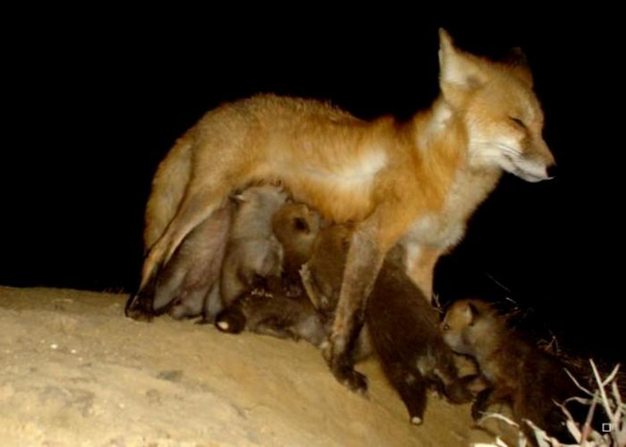 ▼狐狸寶寶的媽媽正在餵奶。