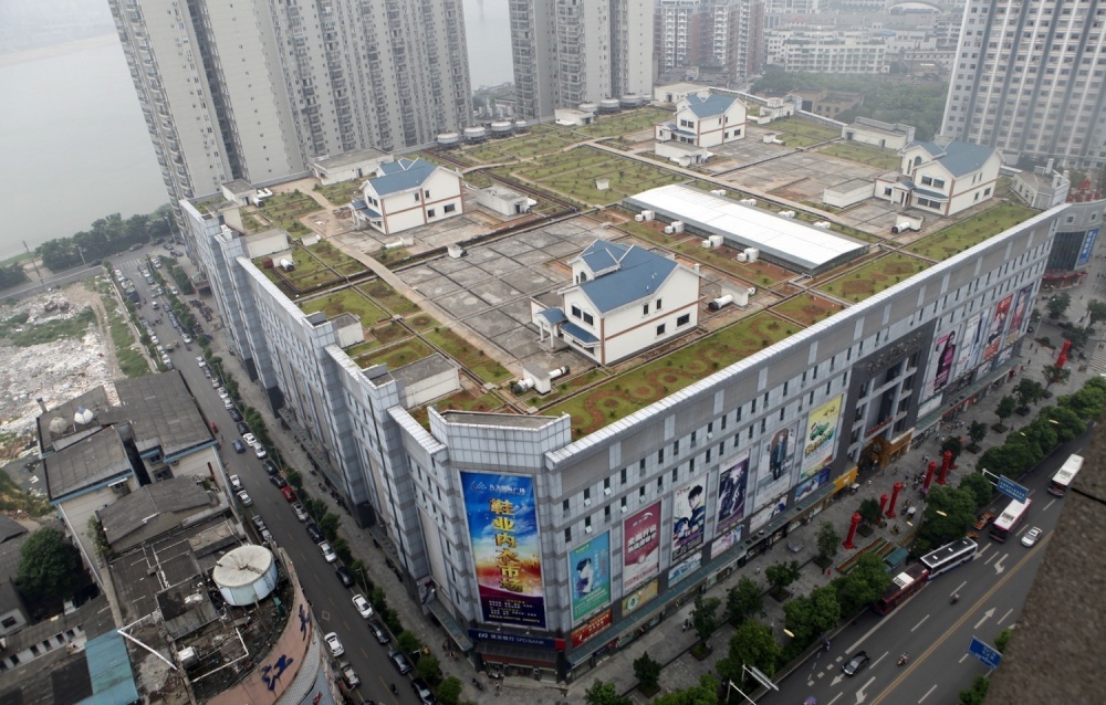 ▼3. 中國湖南,百貨公司上的房子:在大型商場樓頂建造別墅,很難通過規劃報批,不知道這些樓頂別墅是否違規。