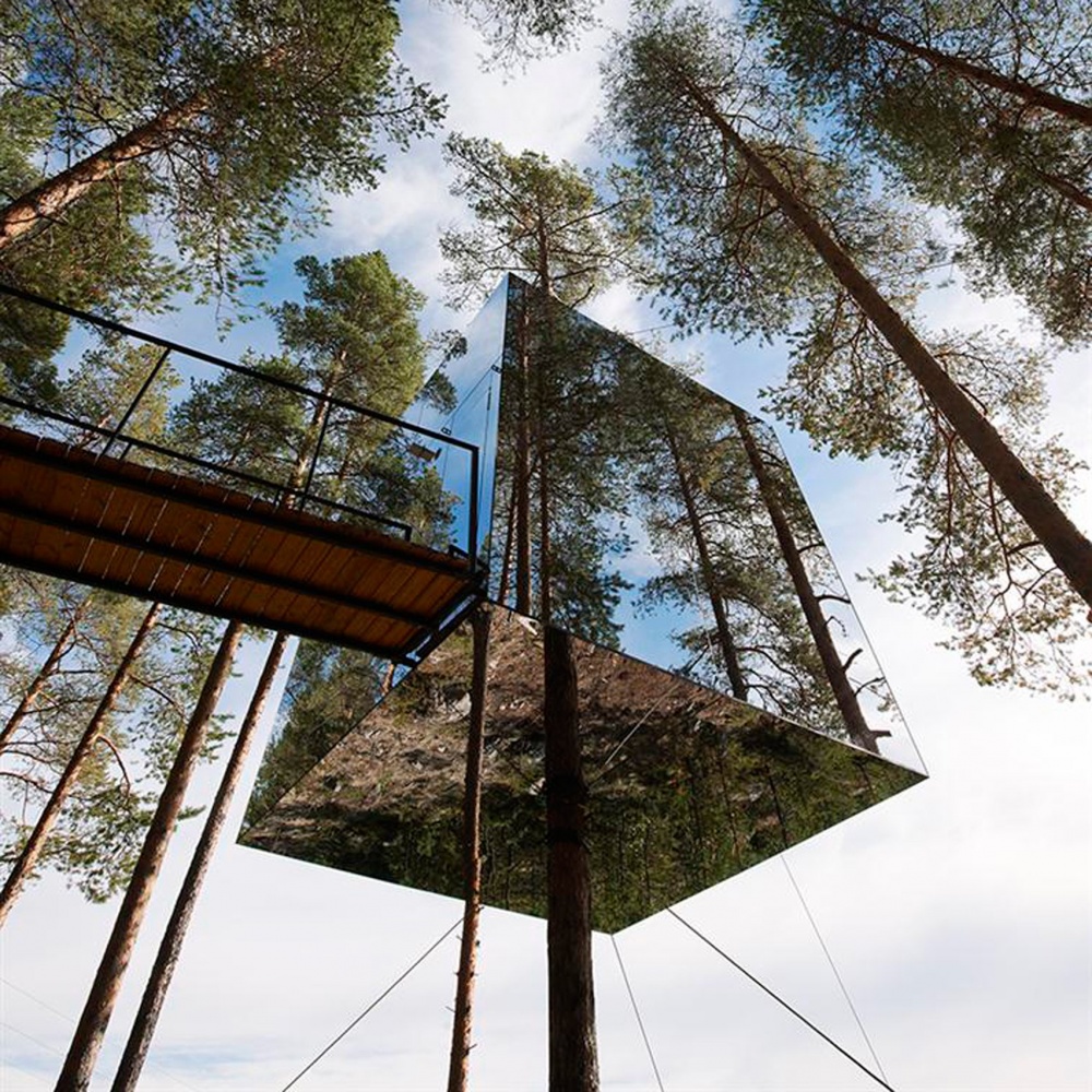 ▼9. 瑞典,小旅館:建築外牆是鏡面設計,完美在叢林中隱身。為了不讓鳥兒撞到上面,建築師特別加入了人類看不到的紅外膠片層。