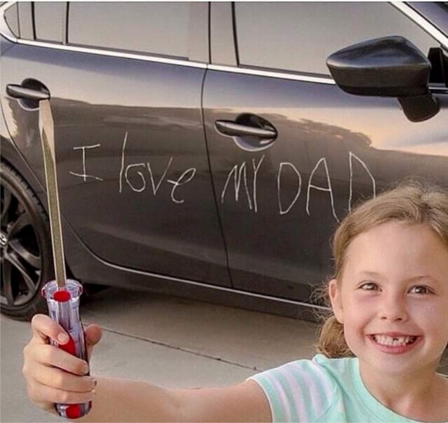 ▼​看到車上的「我愛我爸爸」劃痕,爸爸流下了苦澀又欣慰的淚水。