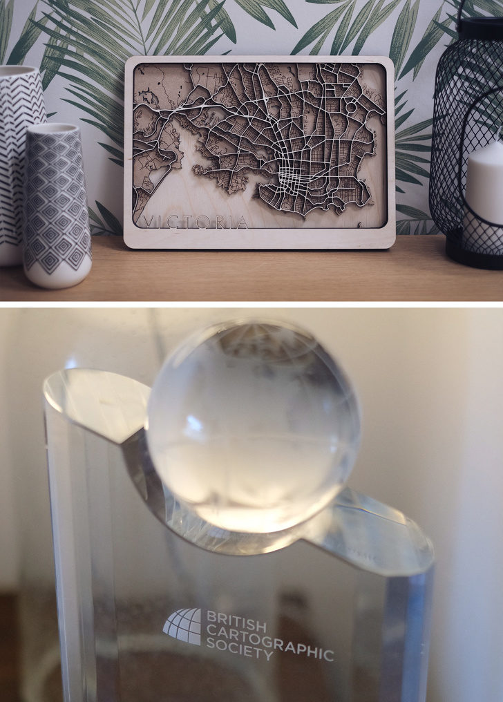▼設計師憑這張迷宮一樣的木地圖獲得了英國製圖協會大獎。
