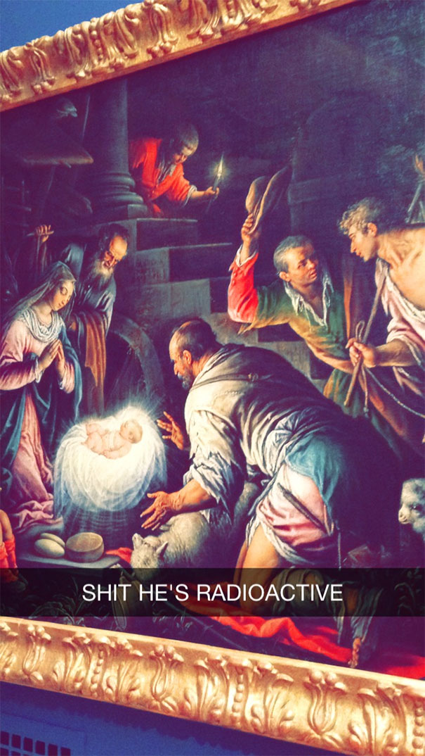 加上搞笑的說明後,這些藝術作品中的人物突然變成了會為生活煩擾的凡人。作者們看到後應該很無奈吧。