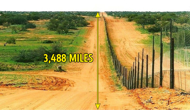 ▼澳洲野犬柵欄比中俄邊界還長:19世紀,牧羊業是澳洲經濟的重要組成部分。因為野狗太多,19世紀80年代,農場決定建造一個可以保護綿羊群的圍欄。 這個柵欄長3,488英里,而中俄邊境長2,615.5英里。
