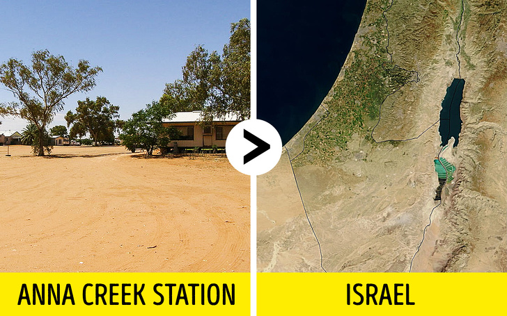 ▼澳洲最大的安娜溪養牛場比以色列的領土還大:安娜溪養牛場是世界上最大的養牛場,面積約9,142平方英里,而以色列面積則是8,019至8,522平方英里。這個養牛場成立於1863年。
