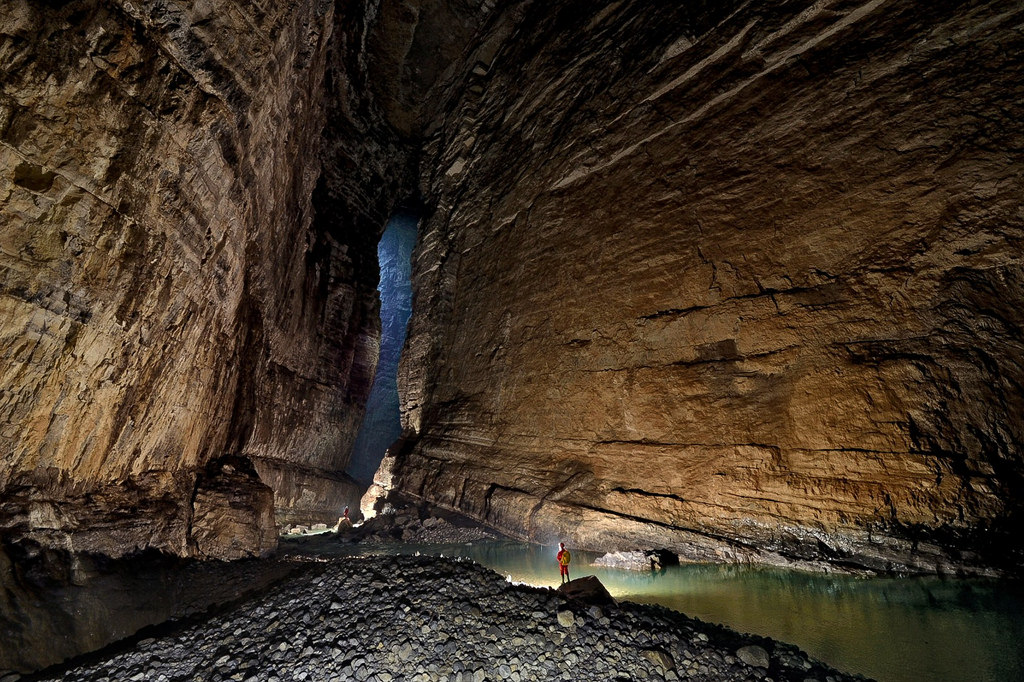 ▼越南的韓松洞深度大約為500英尺,面有一條河流,某些地區下雨的話會洪水氾濫,裡面還有植物和樹木。