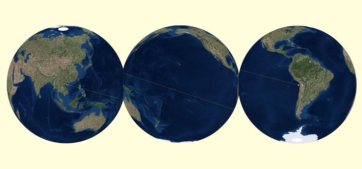 ▼太平洋大到擁有自己的相對極:地球上任何一個地方的相對極,都是地球表面與它截然相反的點。但太平洋太大了。如果你游過了地球中心點,你會發現自己還身處在太平洋中。