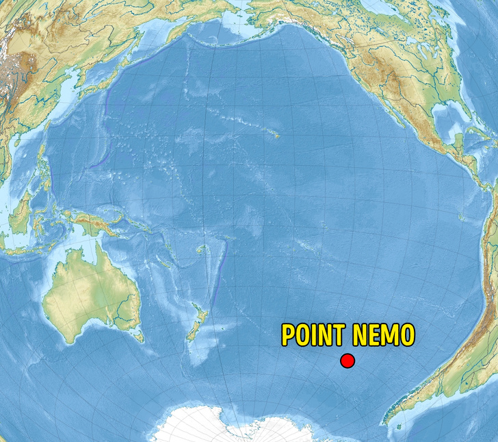 ▼界上最難抵達的地方是「尼莫點」:「尼莫」一詞來自拉丁語的「Nemo」,直譯為「無人」,正式名稱為「海洋難抵極」,是地球表面距離陸地最偏遠的地點。這個點孤離於陸域、船舶航線及洋流之外,所處海域的人類活動與其他生物蹤跡稀少。距離當地最近的人類,竟然是身在地球之外400公里高處的太空站人員,各國航太機構把這個地方稱之「南太平洋無人居住區」,並作為太空載具停用後的墜落地點,避免殘骸傷及人類。