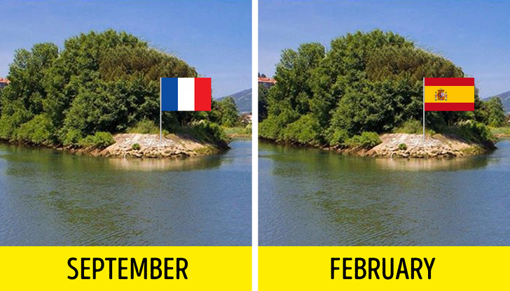▼費倫特島 (Pheasant Island) 每半年換一次所屬國家:費倫特島位於比達索亞河 (Bidasoa River),由西班牙與法國共同擁有。1年中有6個月,這座小島在西班牙統治下,另外半個月則換成法國統治。這座小島無人居住,不對公眾開放。