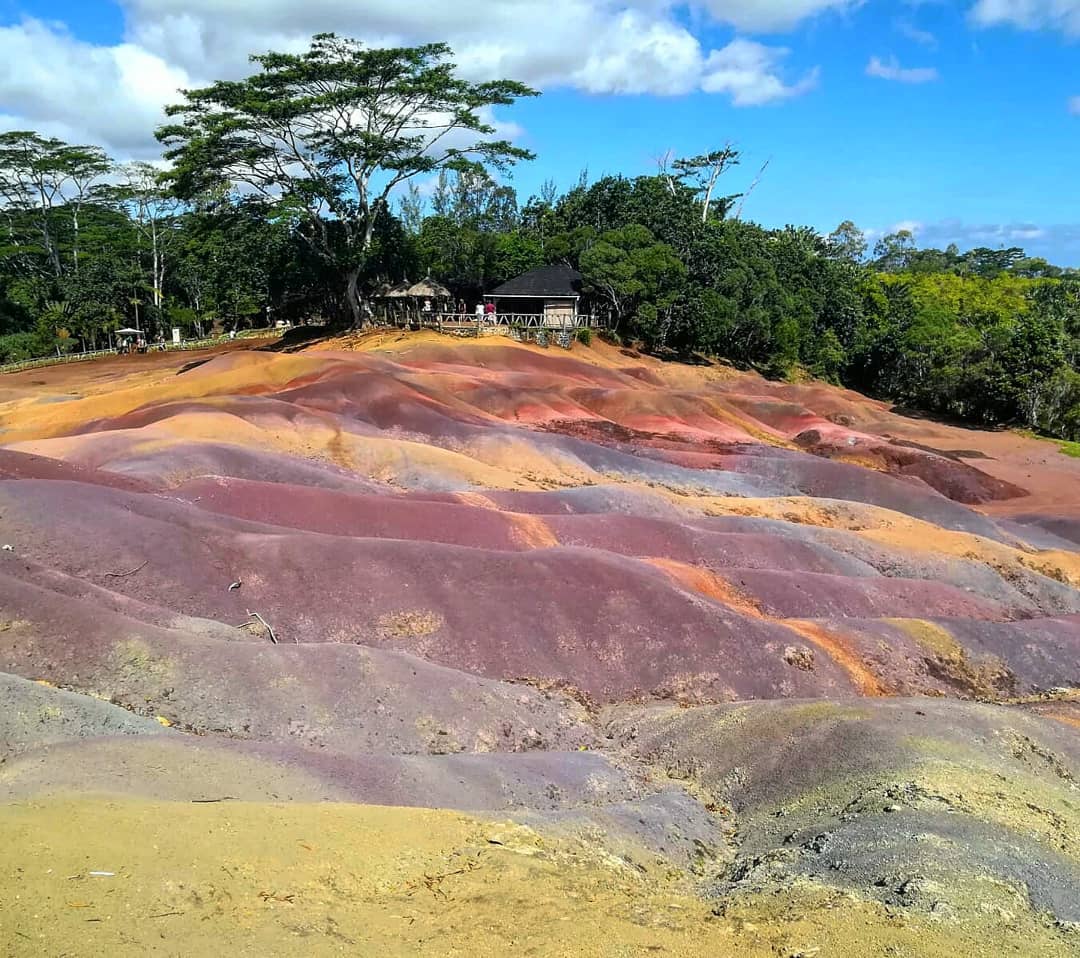 ▼毛里求斯的一片沙丘有7種不同顏色的沙子:在這裡可以看到紅色、棕色、紫色、綠色、藍色、紫色與黃色的傻子。這些沙子都沉澱在不同的沙層中。