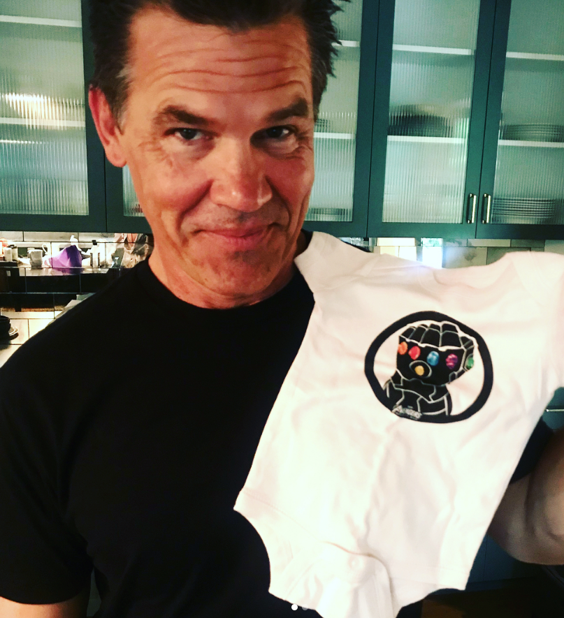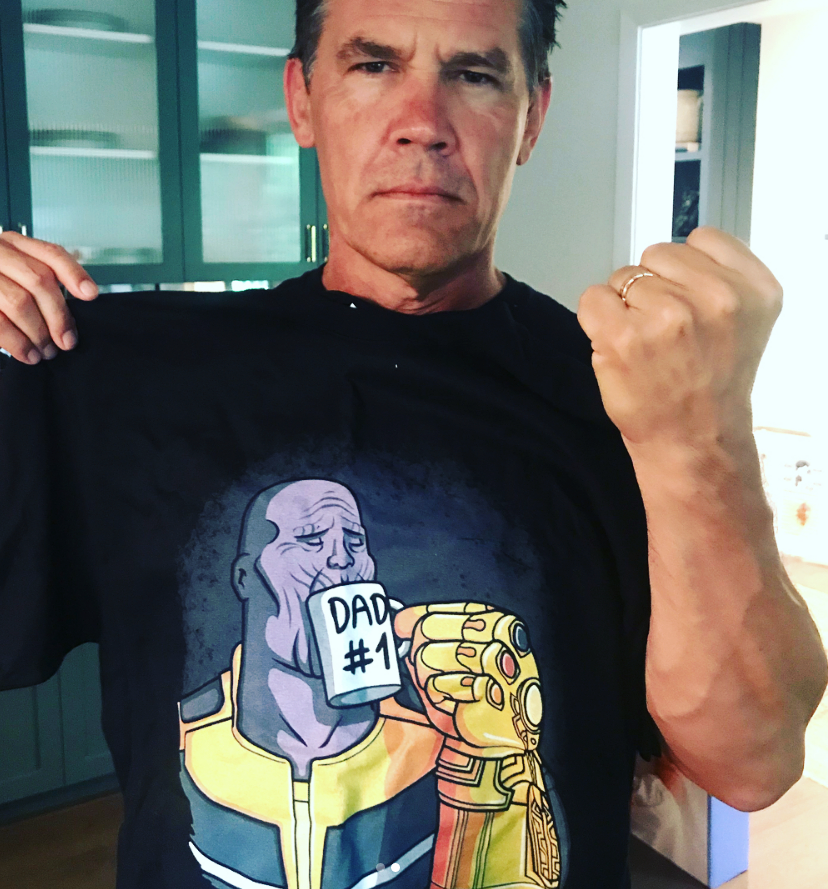 ▼除了女兒,最讓粉絲想要討論的就是Josh Brolin之前PO過的兩張照片。那就是有無限手套圖案包屁衣和薩諾斯優雅喝著咖啡的T恤!