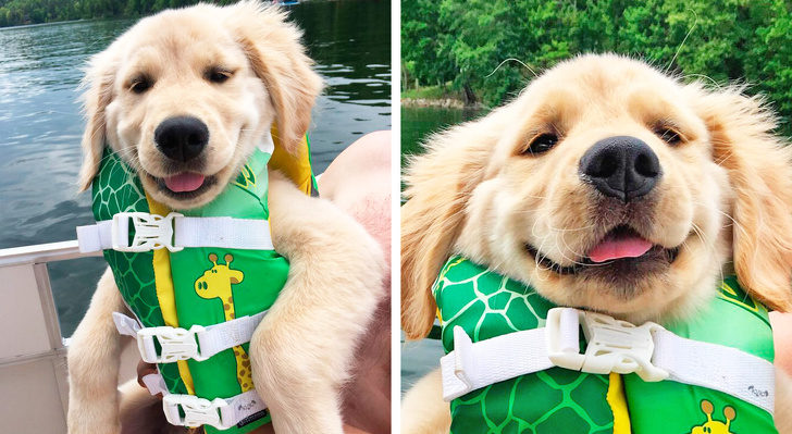 ▼「這是泰德,今天牠第一次搭船,這件長頸鹿背心是牠自己挑的喔。」