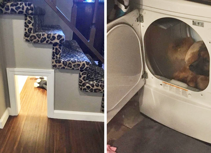 ▼「去年我在樓梯下建了一個隔音的狗屋,因為我希望我家狗狗Bucky可以有一個不被打擾的空間。事實證明,我根本是在浪費時間。」