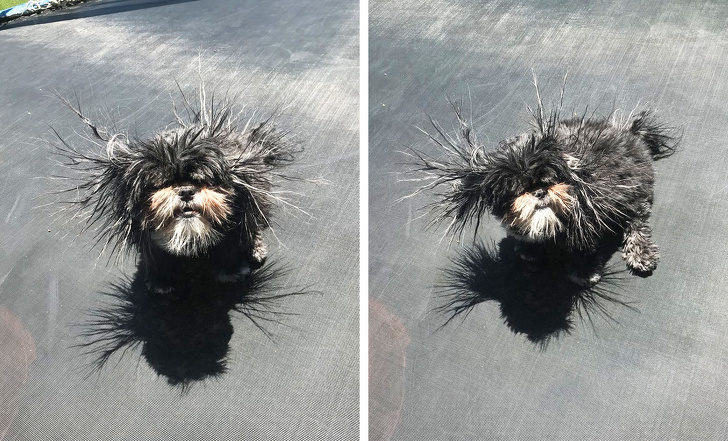 ▼「我把狗狗放在跳跳床上3秒,牠就變成了電屬性神奇寶貝。」