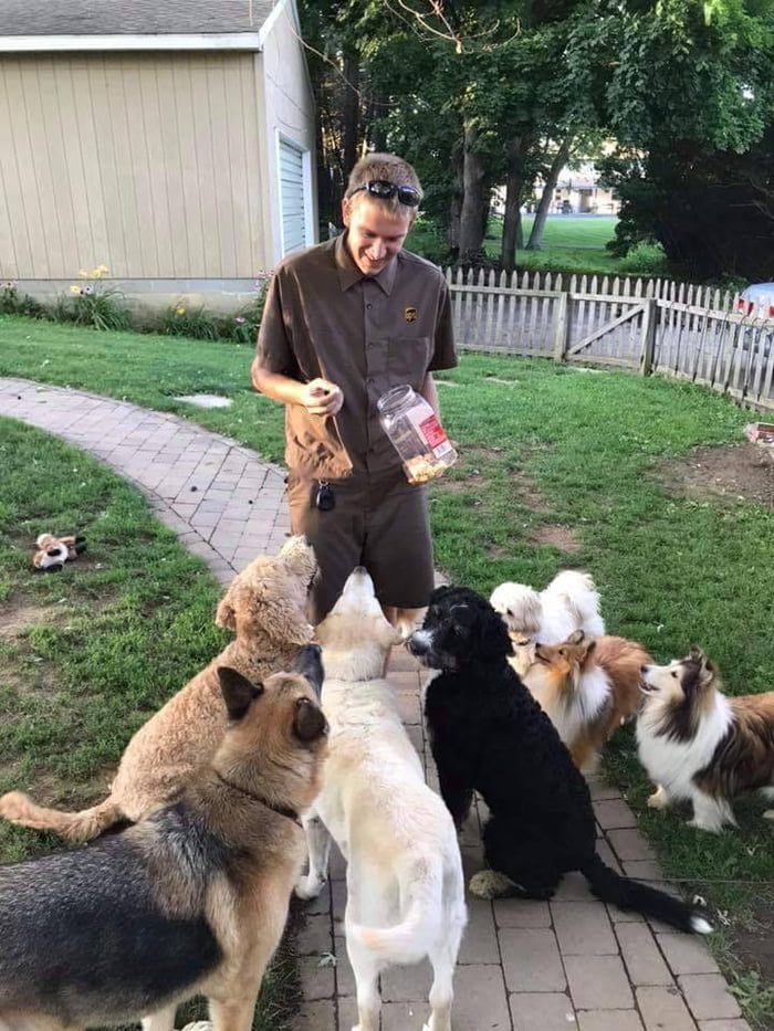 快遞員每天東奔西跑,非常辛苦,但他們也能交到很多朋友,那就是可愛的毛孩!41歲男子Sean McCarren是美國快遞公司UPS的快遞員。他已經從事這份工作17年,每天都能見到很多可愛的狗狗。6年前,Sean決定開設粉絲專頁「UPS Dogs」,把狗狗們的照片、影片po到上面去。