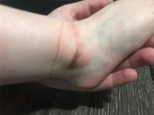 ▼「這件事發生在我的孩子身上,我很難過,因為她喜歡脫鞋,這麼做顯然是為了系緊鞋子。」海斯在臉書上寫道,孩子還不到一歲半,什麼都不會說,只能任由保育員這麼做,這讓她非常痛心。她很費力才把膠帶從鞋子上拆下來,因為勒的太緊了,女兒的腳踝處留下了深深的痕跡,還有明顯的腫脹和淤青,對於父母來說,看到自己的孩子被這樣對待,簡直不能接受。
