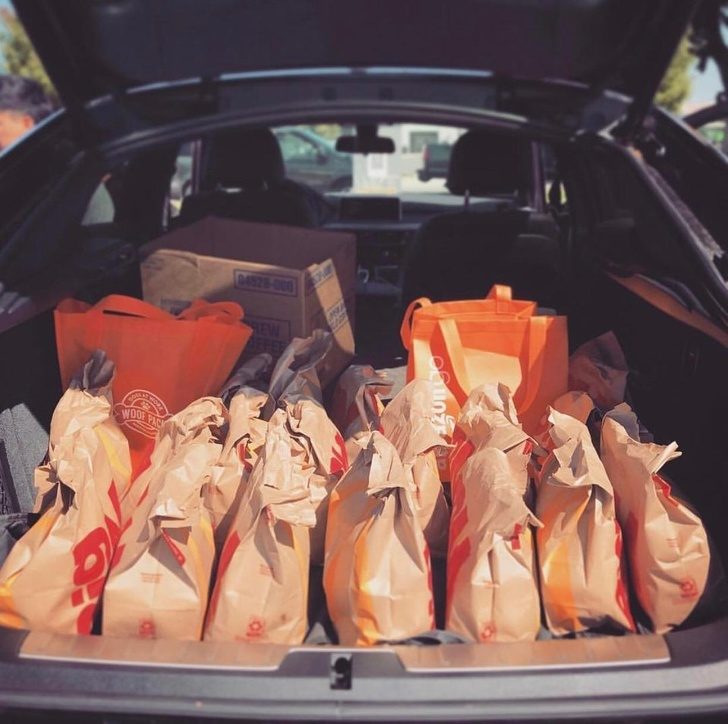 ▼「每個月我和老公都會找一個週末,買100份漢堡送給有需要的人。」