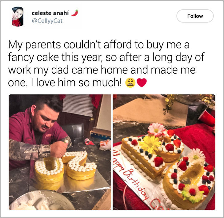 ▼「今年我生日,爸媽沒錢買太貴的蛋糕,我爸工作一整天後回家給我做了一個,我超愛他!」