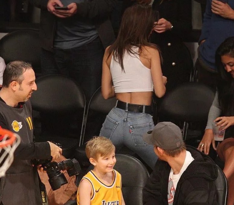 ▼不過有網友提供了另一個角度拍攝的照片,發現坐在前方的這位爸爸竟然在自己兒子面前盯著艾米麗的「亮點」狂看!